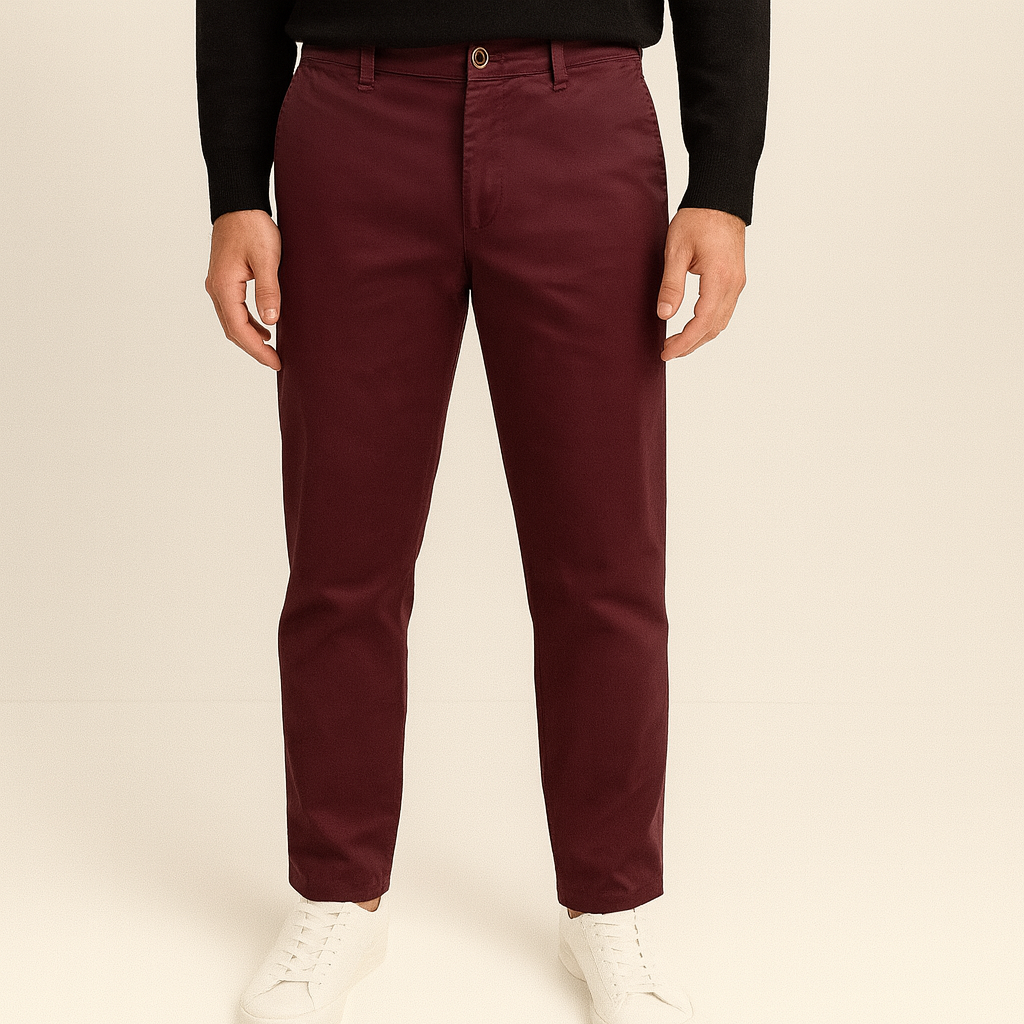 Елегантни бордо chinos панталони со модерен slim крој.Богатата нијанса и квалитетниот материјал им даваат софистициран изглед погоден за работа, вечерни излегувања или урбан дневен стил. Удобни, стилски и лесно комбиниливи.