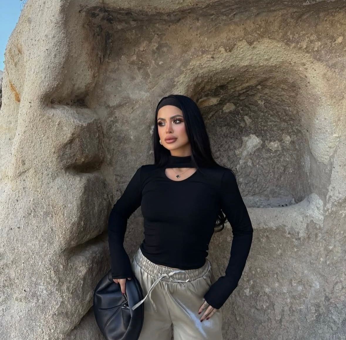 Стилен и софистициран горен дел во нежна црна нијанса, идеален за модерни и елегантни комбинации. Изработен од мек и еластичен материјал што љубезно се прилепува кон телото, овој топ го нагласува струкот и создава женствен силует.Деталот со високата јака и дискретниот исечок под неа додаваат уникатност и трендовски изглед. Долгите ракави и нежната текстура го прават совршен за дневни и вечерни комбинации.